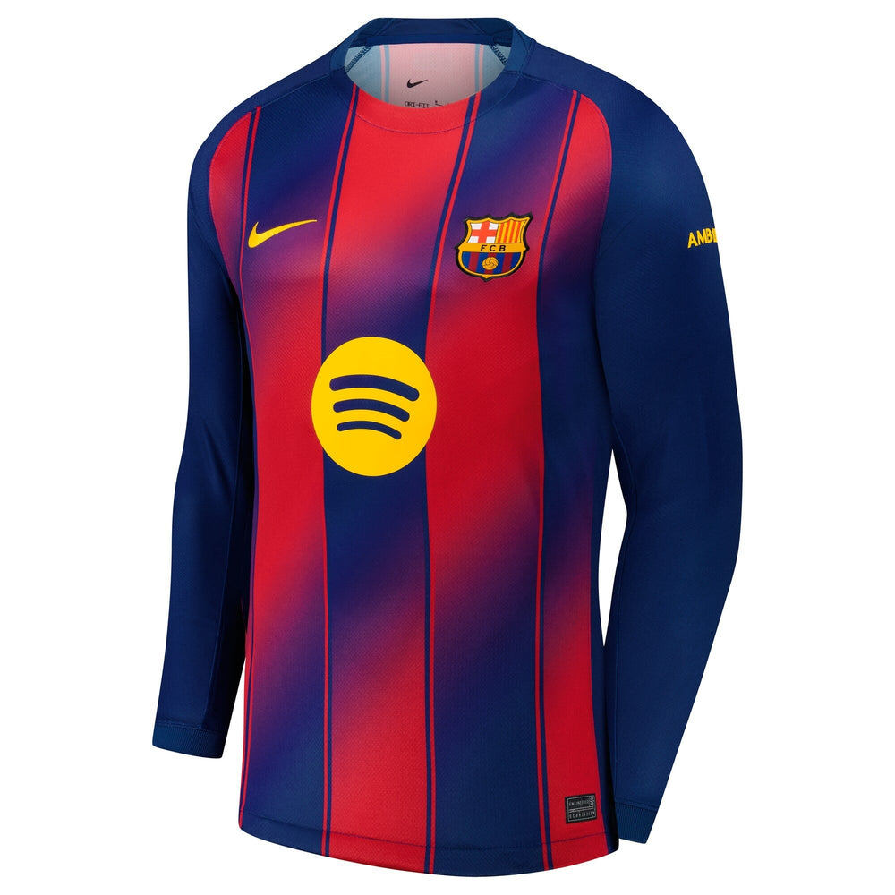 Cheer on FC Barcelona and one of the brightest young stars in football with the Lamine Yamal 2025/26 Home Long Sleeve Player Jersey from Nike. Featuring the club’s iconic blue and garnet stripes, this officially licensed jersey is designed with Lamine Yamal’s name and number on the back, letting you represent Barça’s rising phenom in true style. Crafted with sustainable materials and Nike’s advanced Dri-FIT® technology, it keeps you cool, dry, and comfortable whether you’re in the stands, on the pitch, or showing your support around town. With mesh ventilation panels, a tagless collar, and authentic heat-sealed details, this jersey delivers both performance and pride in every wear.