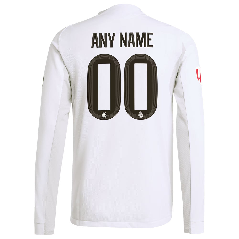 We invite fans to celebrate their passion for Real Madrid by customizing their very own 2025/26 Home Authentic Long Sleeve Jersey from adidas. This product allows you to personalize the jersey with your preferred name or text—simply enter your custom message into the designated field before completing your order. Please note that all personalization is based on the exact text provided by the customer at checkout, so double-check spelling and formatting before finalizing your purchase. Show off your unique style while repping Real Madrid in true authentic fashion!